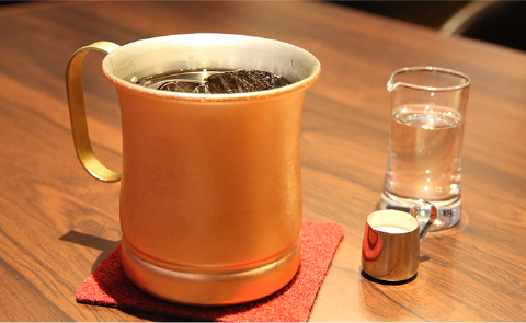 通常サイズの1.5倍のビッグサイズもあり、冷たいコーヒーを更に美味しく頂けるようカップも銅にこだわりました。